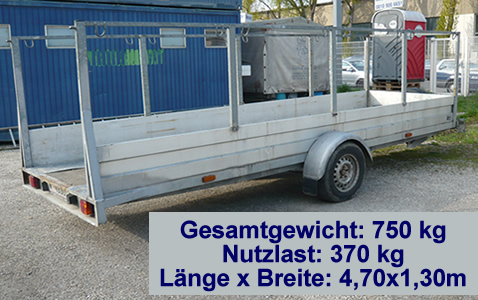 Dieser Langgutanhänger wurde speziell für den sicheren Transport von überlangen Materialien entwickelt. Mit einer Ladefläche von 4,70 m Länge und 1,30 m Breite eignet sich der Anhänger ideal für Bauholz, Metallprofile, Rohre, Kabeltrommeln und andere sperrige Langgüter.