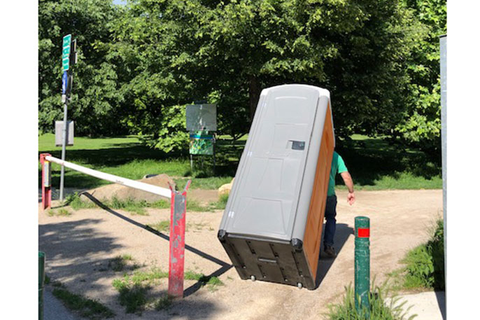 Die Mini-Kabine wird auf Wunsch durch unser Serviceteam geliefert, entleert und gereinigt. Der Wechseltank kann einfach ausgetauscht und direkt vor Ort an eines unserer Entsorgungsfahrzeuge übergeben werden.
